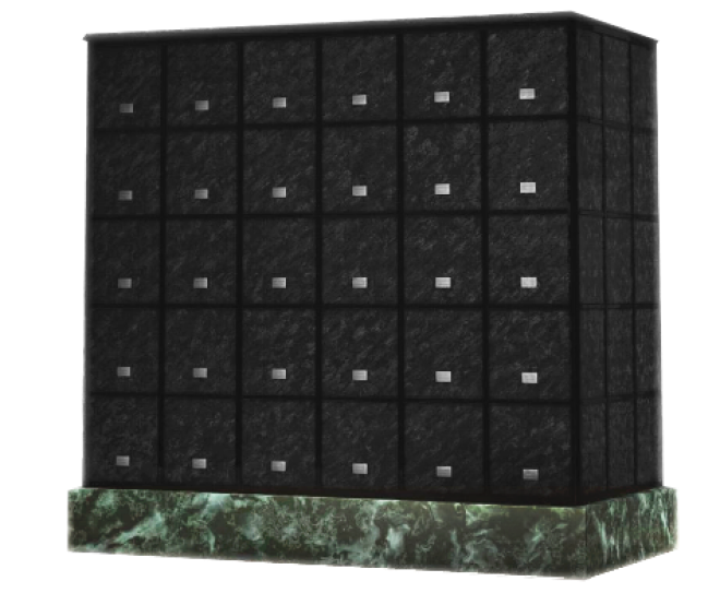 Součástí kolumbária mohou být bunky v různých velikostech dle vašich požadavků. Vyberte si konfiguraci s většími bunkami, abyste svým blízkým umožnili umístit upomínkové předměty k urnám, nebo si vyberte menší bunky, které jsou ekonomicky dostupnejší. Každé dveře do bunky obsahují jmenovku a bezpečný zámek s klíči, které se dávají členům rodiny na památku. Všechny bunky jsou obklopeny krásnými žulovými dlaždicemi, které doplní jakýkoli dekor.