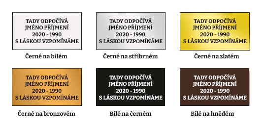 Pro identifikaci obsahu každé buňky poskytujeme štítek se jménem pro jednotlivé vnitřní výklenky. Standardem je černá na mědi. Vyberte si z pěti dalších nestandardních barevných možností. K dispozici jsou čtyři řádky textu.